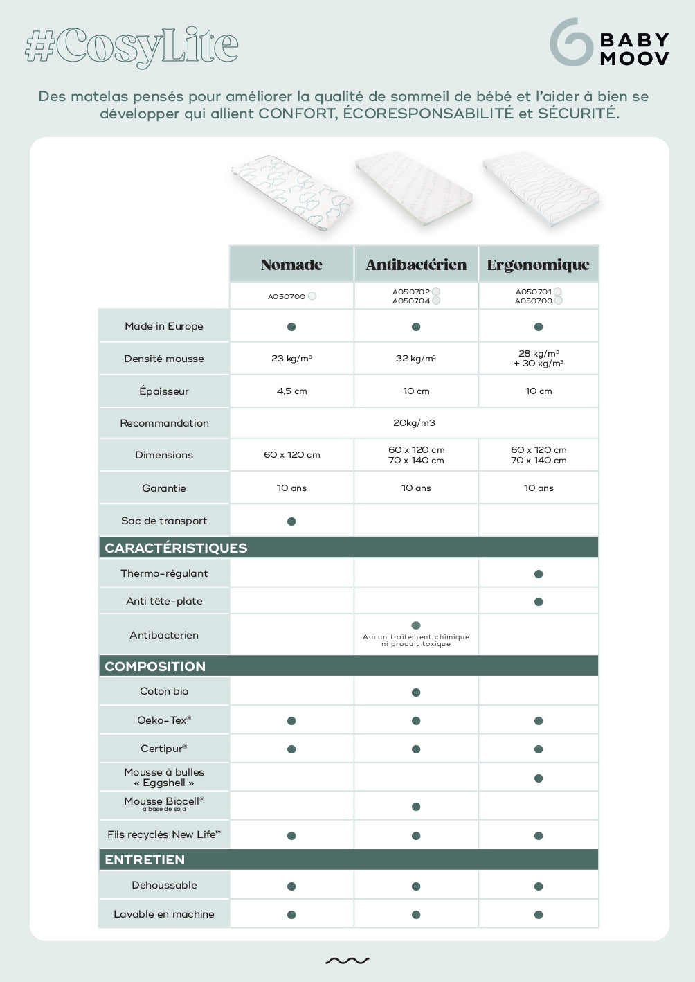 Découvrez la gamme de matelas bébé Cosy'Lite